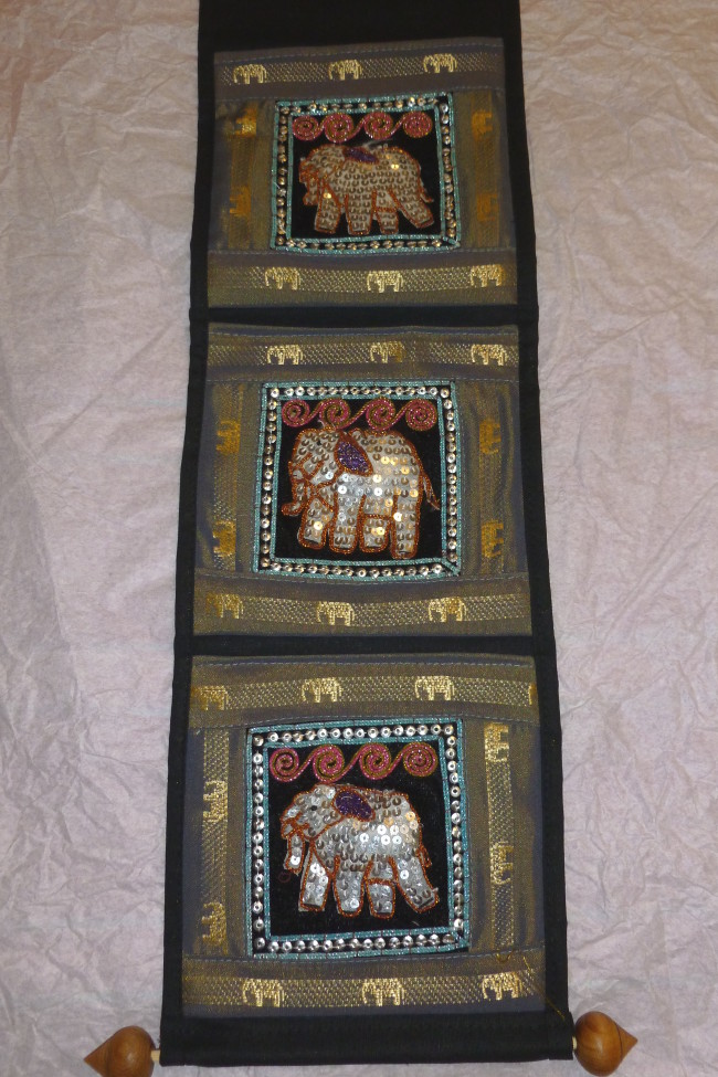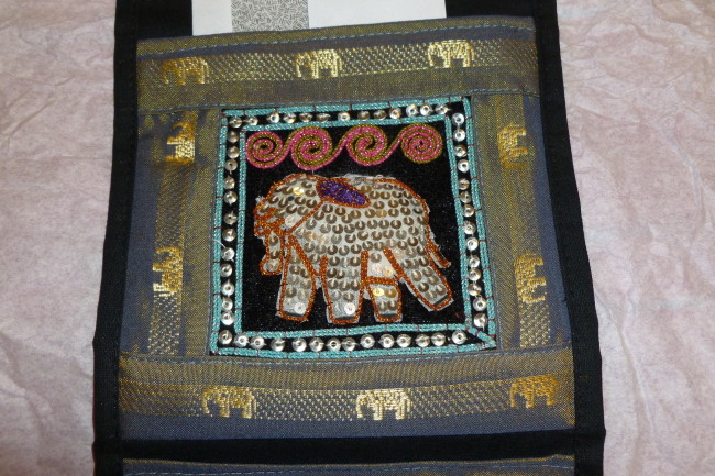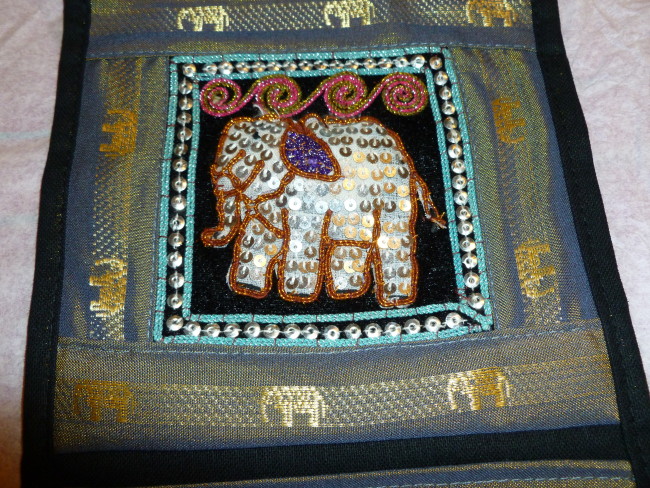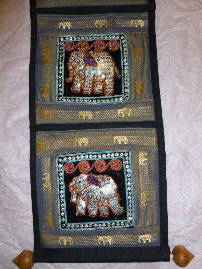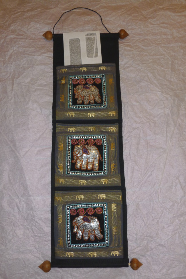 This Fabric Letter Holder has 3 Pockets Elephants on the Front Gray Color.