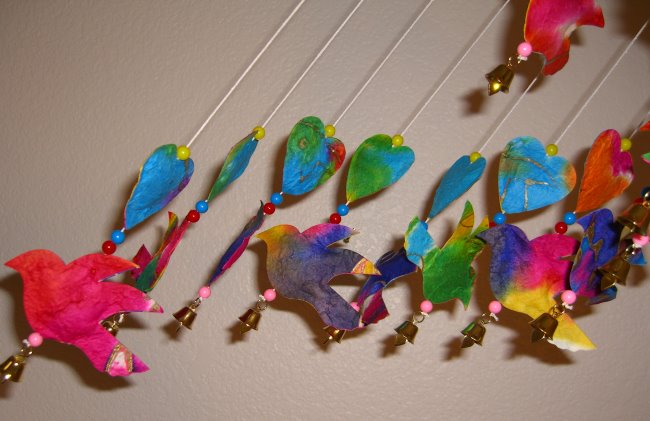 Umbrella Mobile or Wind-Chimes shown here Birds and flowers.