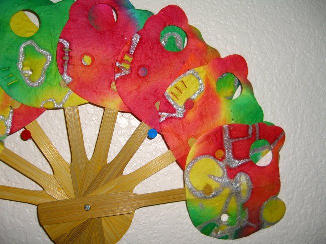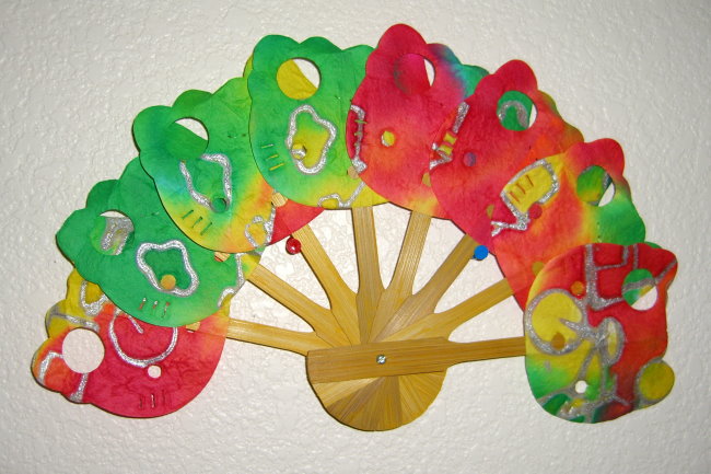 is Saa Paper Hand Fan Kitty Style with Bamboo Handle.