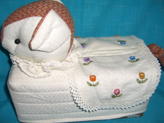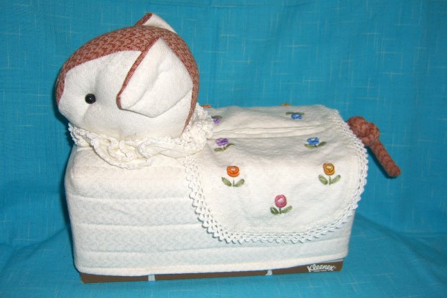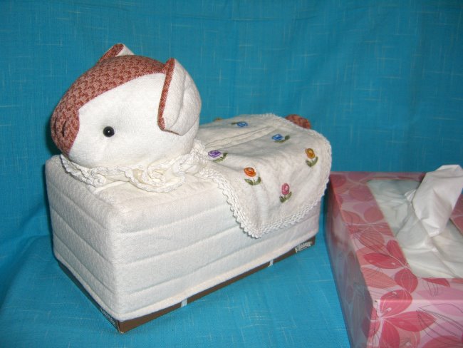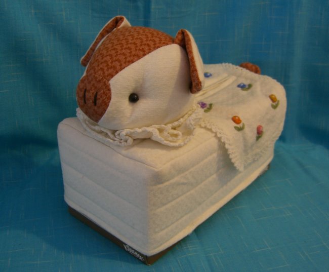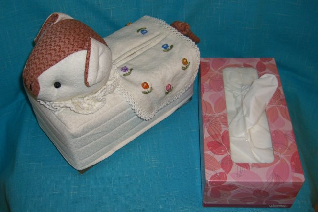 This cute cover is slip over a tissue box. There are two small