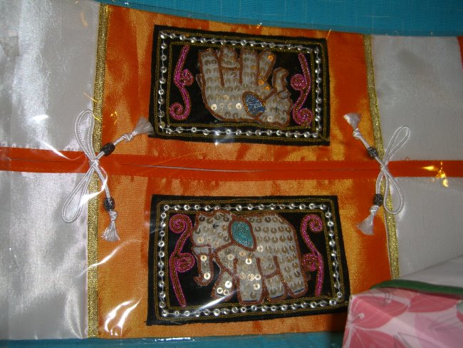 Shown here is BI-colors whit and orange with small elephants kalaga