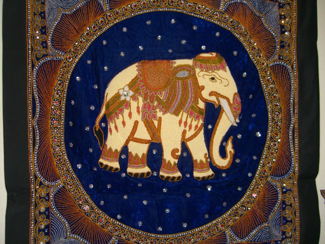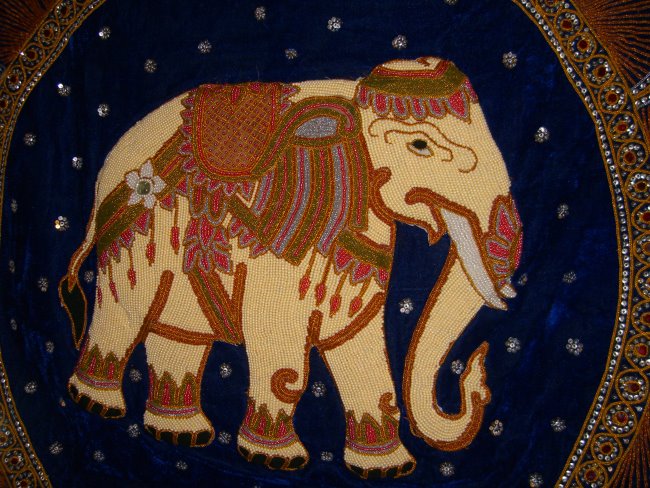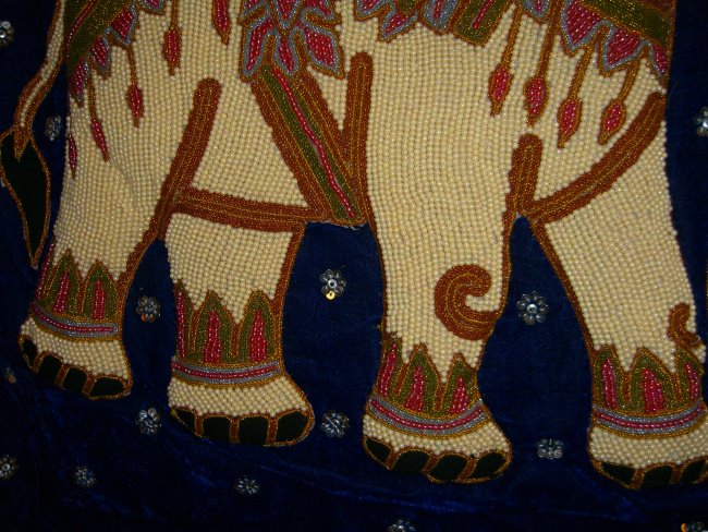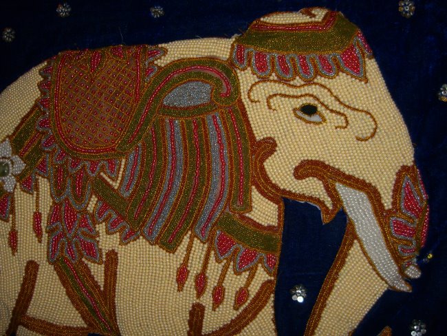 beads. Hand embossed elephant with pearl beads, golden, and other