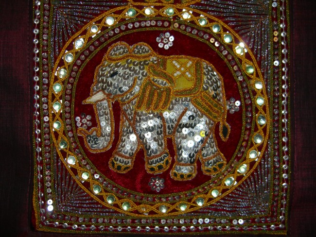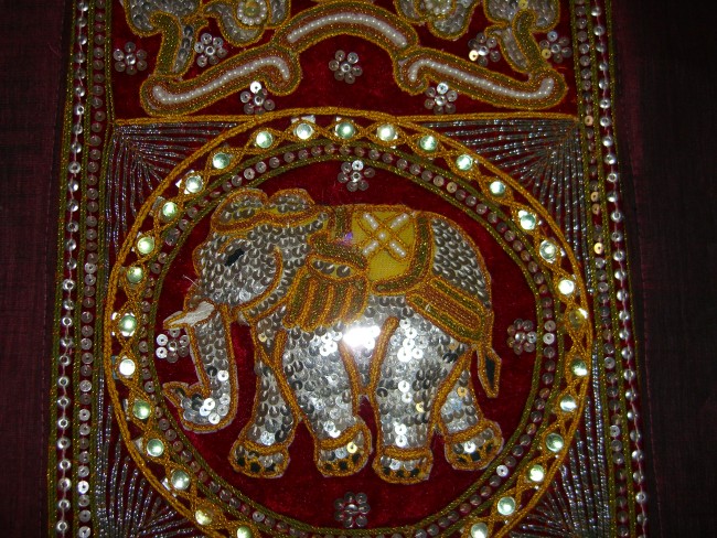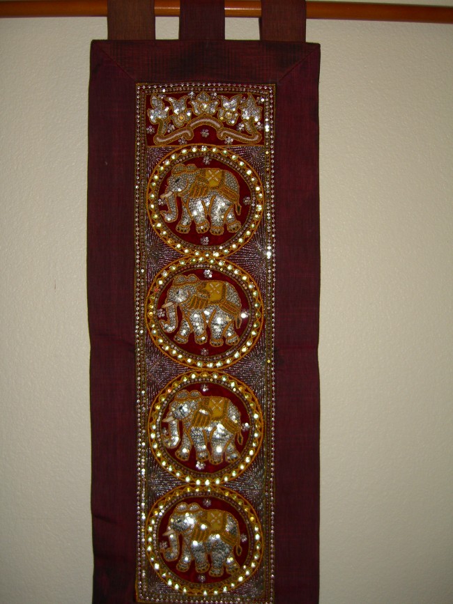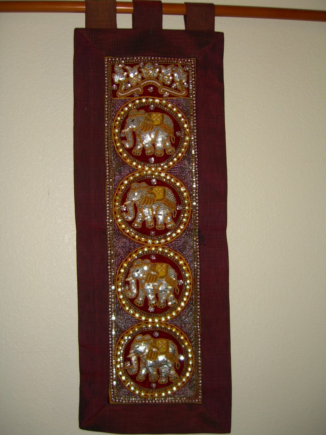 This is Four Sequins Elephants a smaller version of vertical Kalaga Tapestry Wall Art.