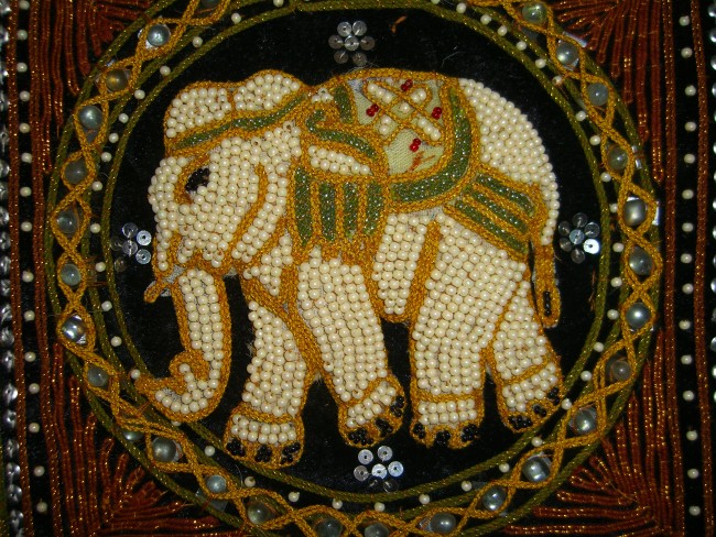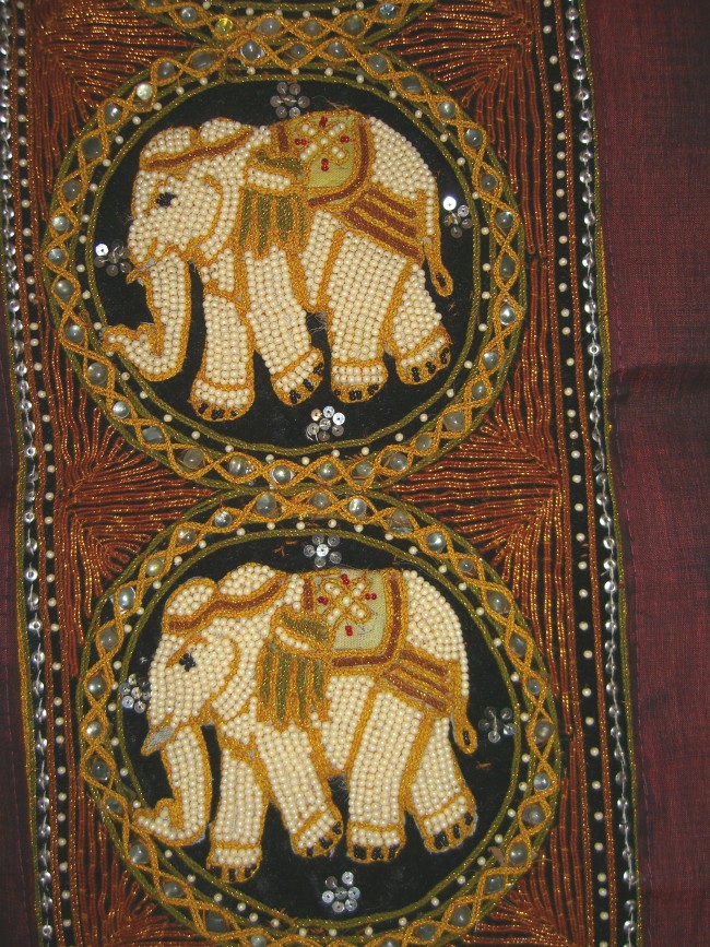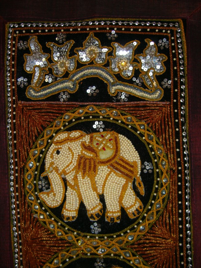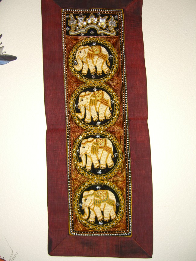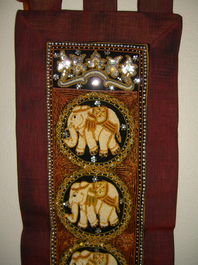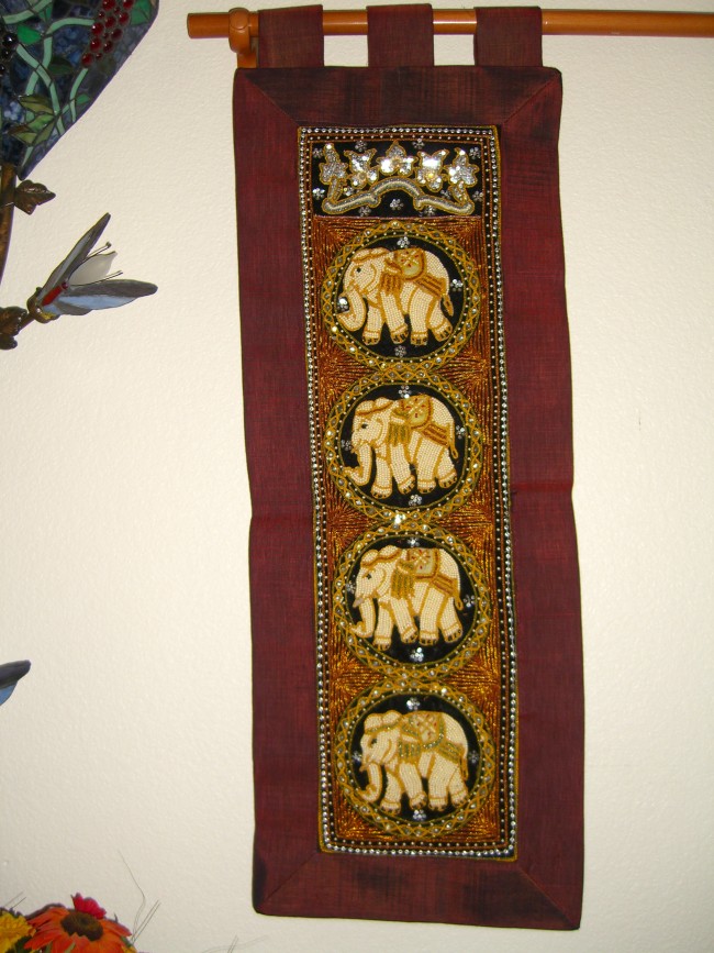 This is Four Pearl Elephants a smaller version of vertical Kalaga Tapestry Wall Art.