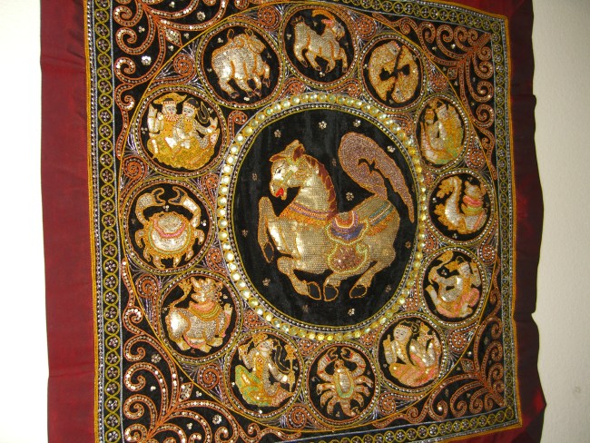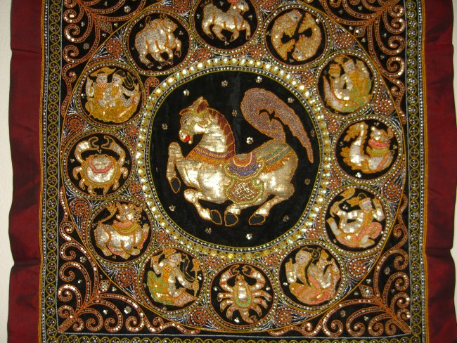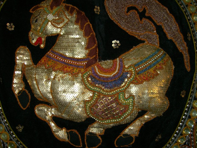 beads and zodiac. Hand embossed horse with original silver disc