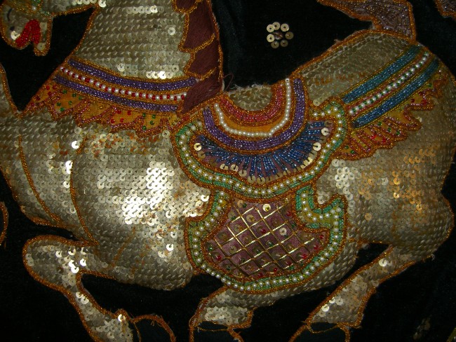 sequins and rusty metal spacers that make the kalaga looks realistic