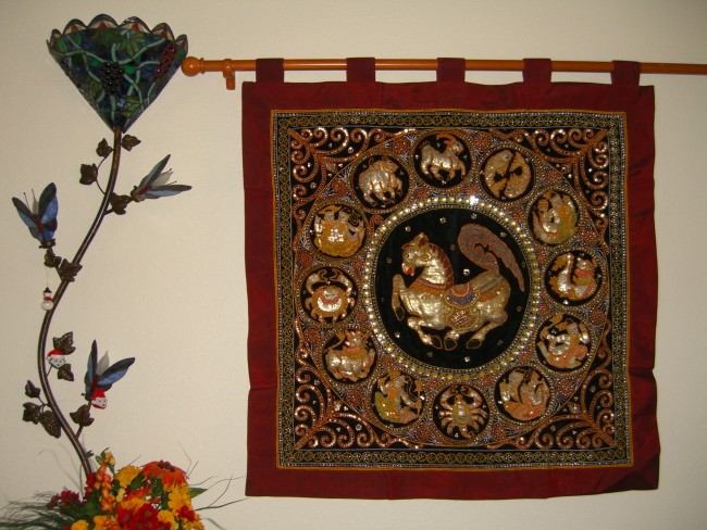 This Kalaga ready to hang by Curtain rod or wooden pole