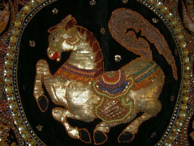 and other colored cords applied into this art. The horse has hand