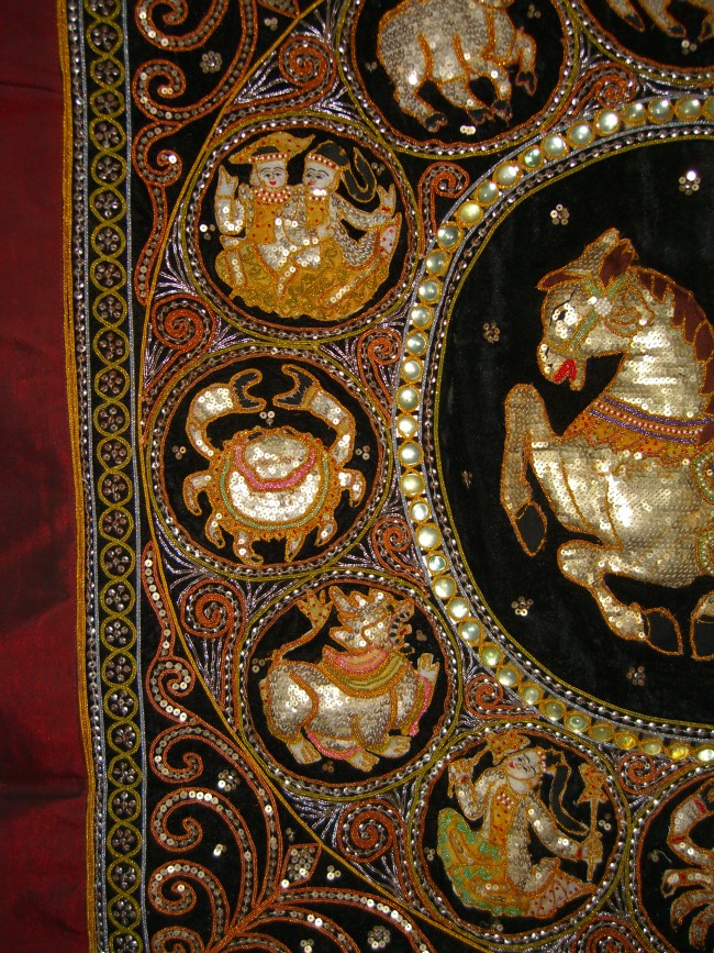 saddle. There are twelve zodiac silver disc sequins all around
